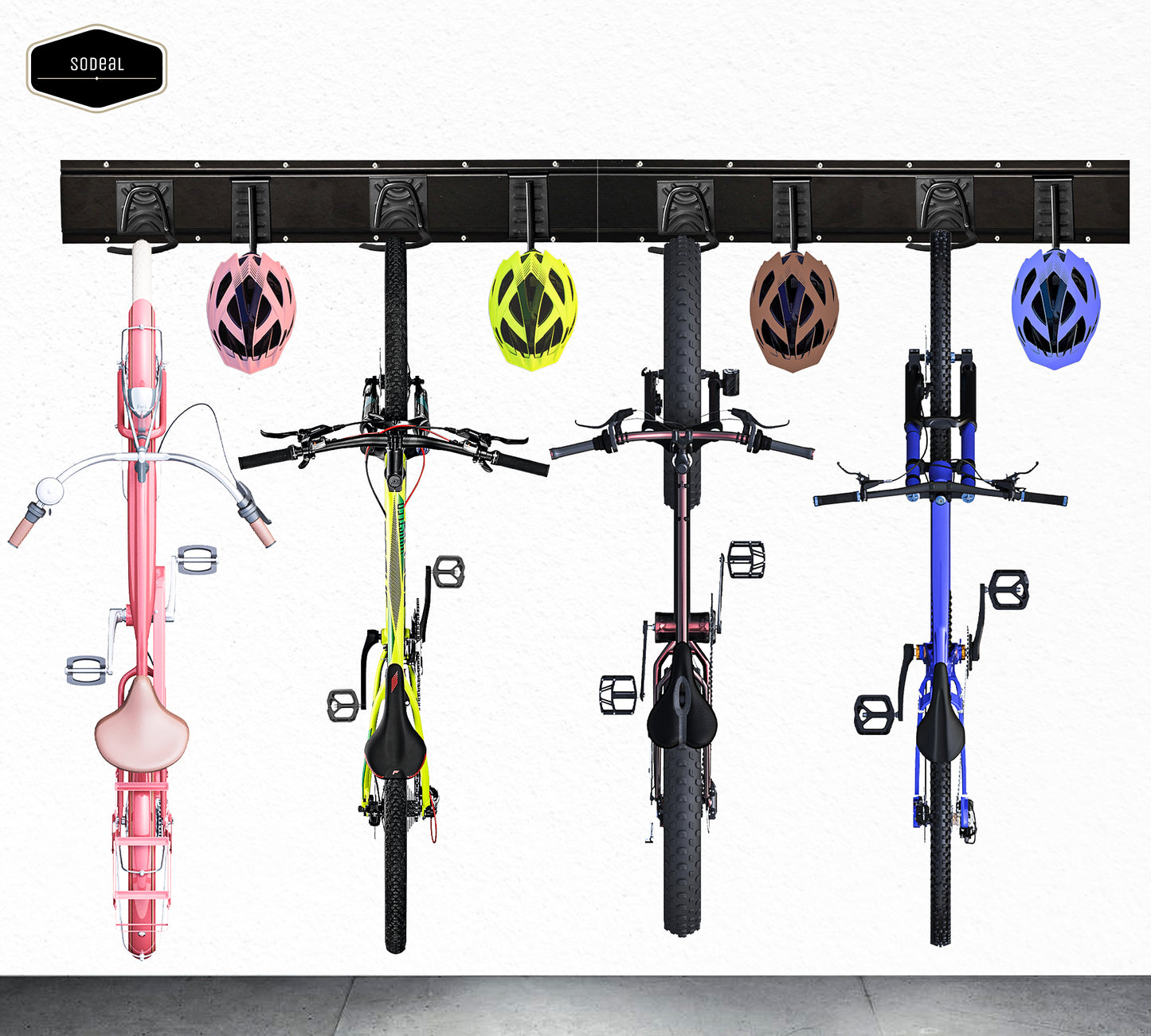Multifunktionales SODEAL-Fahrradaufhängungssystem für bis zu 4 Fahrräder, Fahrradhelme und anderes Zubehör.