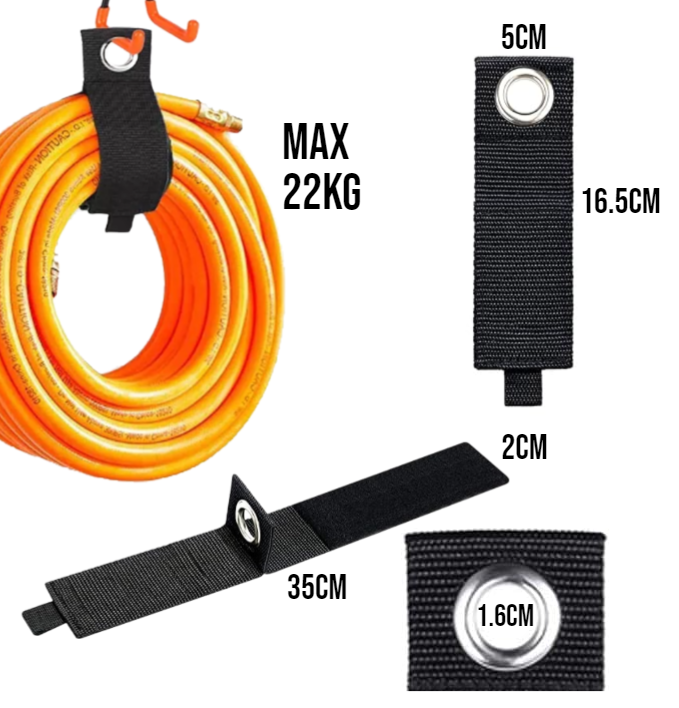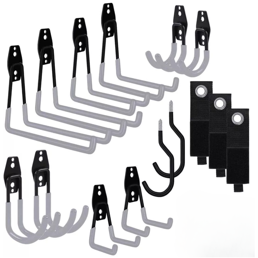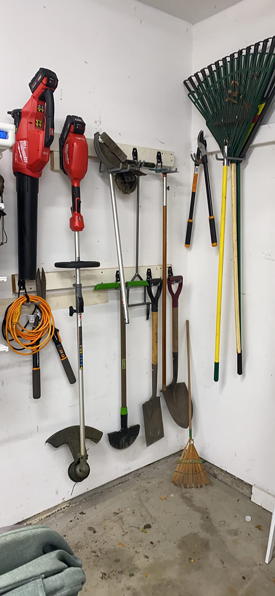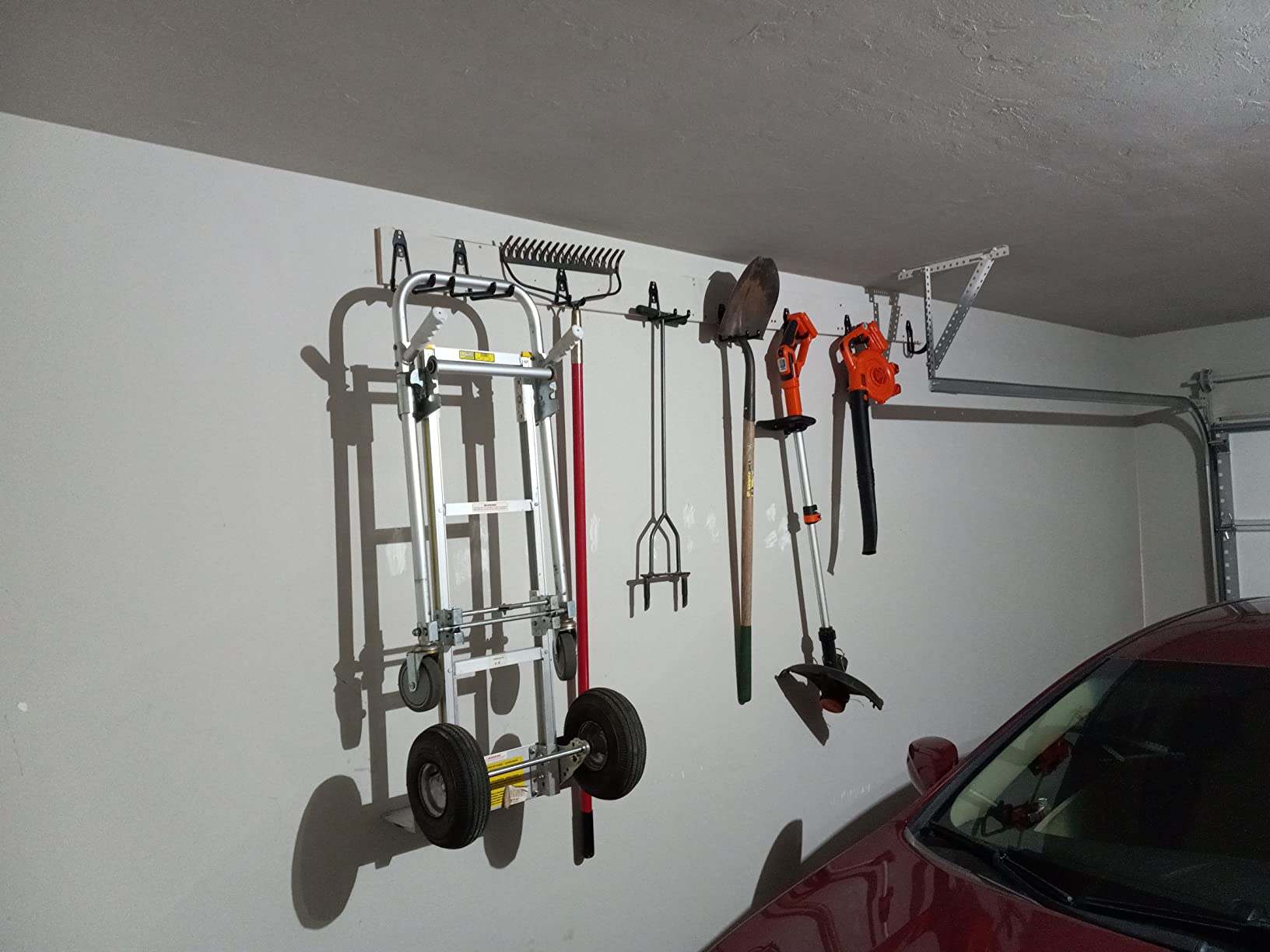 Die verschiedenen Größen der Haken sorgen dafür, dass sie für unterschiedliche Zwecke verwendet werden können. Sowohl schwere Werkzeuge (z. B. Leitern, Spaten, Klappstühle) als auch sperrige Werkzeuge (z. B. Gartenschläuche, Seile) sowie alle Arten von Kleinzubehör können platzsparend verstaut werden.
