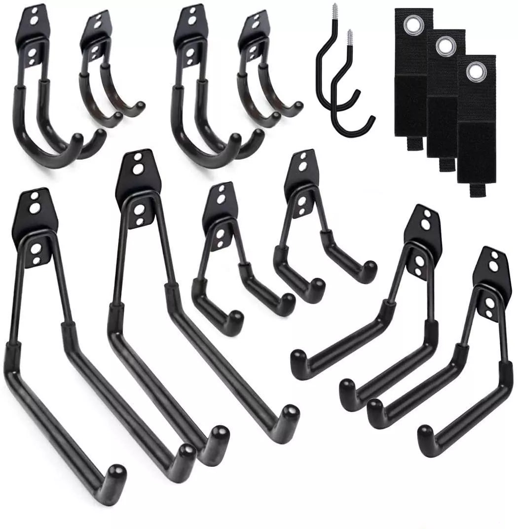 Die verschiedenen Größen der Haken sorgen dafür, dass sie für unterschiedliche Zwecke verwendet werden können. Sowohl schwere Werkzeuge (z. B. Leitern, Spaten, Klappstühle) als auch sperrige Werkzeuge (z. B. Gartenschläuche, Seile) sowie alle Arten von Kleinzubehör können platzsparend verstaut werden.